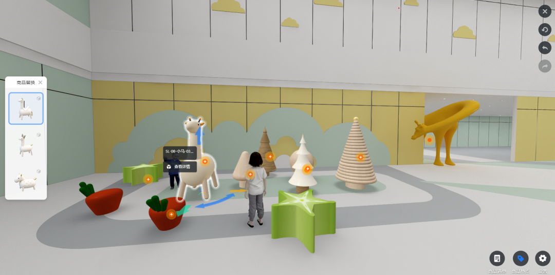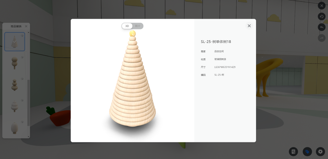 在品创云设计平台,美陈产品360°呈现,不但有宏观场景效果,还能深入肌理。更高效的是,每一件美陈产品尺寸、价格信息都能详细显示,自动生成产品报价清单,省时省力。
